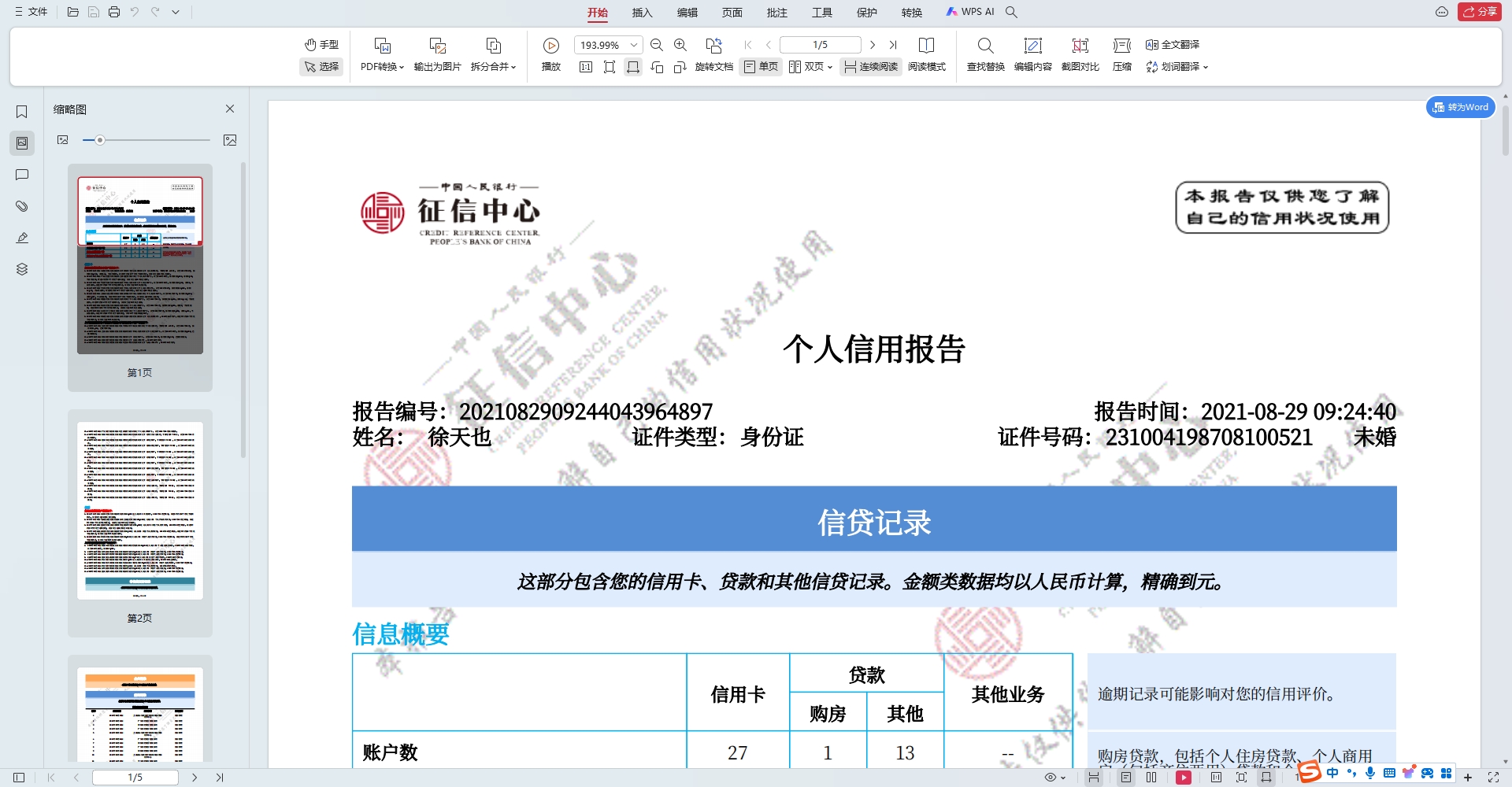提供姓名身份证号即可查询人行详版征信